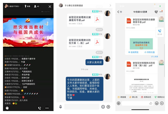 7月17日以来,我省遭遇大范围极端强降雨,多个地市发生严重洪涝灾害。近期,全国多个省份相继出现本土病例,防控形势复杂严峻。团课上,各班利用钉钉群、QQ群课堂等平台,通过连麦提问、讨论、观看视频等多种形式展开,一同学习《新型冠状病毒肺炎防控方案(第八版)》中关于个人及社区防控的有关规定和《新型冠状病毒肺炎健康教育手册(第二版)》的内容,教育引导团员青年理性、客观认识疫情。团课过程中,许多同学介绍了自己亲身经历洪水到来时的真实情况,讲述了在抗洪和防疫过程中身边众志成城、共克时艰的榜样故事,尤其是全国各族人民都在关注以自己的方式贡献爱心和力量,捐款捐物、志愿服务,让我们深受感动。提到现在的疫情防控形势,同学们纷纷表示将自觉遵守防疫要求和规定,科学防控疫情,做好防疫宣传教育,承担起青年人的责任与担当。