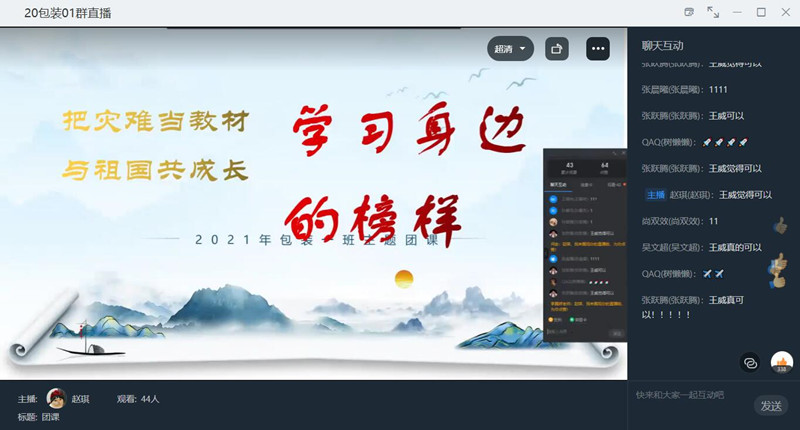 为激励和引导广大学生“把灾难当教材,与祖国共成长”,引导同学们向榜样学习,积极参与当地的志愿服务,tyc522cc太阳成集团于2021年8月18日组织各班开展了“把灾难当教材,与祖国共成长——学习身边的榜样”线上主题团课活动。
