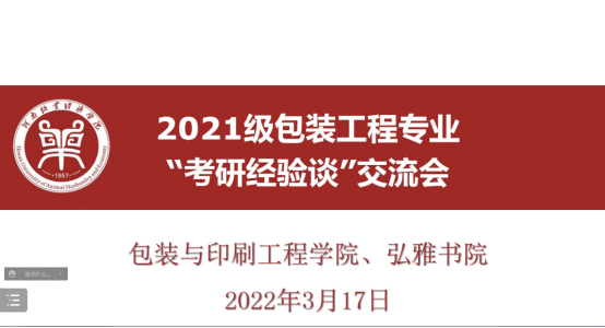 为帮助2021级包装工程专业学生明确学习目的、端正学习态度、增强学习动力,培养学生学习兴趣,3月17日我院联合弘雅书院共同开展了包装工程专业“考研经验谈”活动。邀请即将研究生毕业的我校15级三位优秀本科毕业生做经验分享,tyc522cc太阳成集团院长张岩、教学科研主任苗红涛、书院育人导师及部分专业教师参加会议,会议由包装工程教研室主任卢芳芳主持。