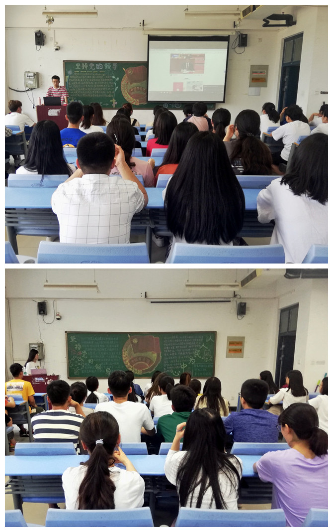 为进一步发挥共青团组织的思想引领作用,庆祝中华人民共和国成立70周年,纪念五四运动100周年,引导青年学生深入领会习近平新时代中国特色社会主义思想。我院18级各班于5月30日下午组织开展以“坚持党的领导,以人民为中心”为主题的团课活动。
