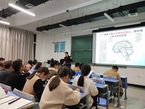 讲座过程中,王书记首先通过视频向我们展示了生活中的十大刻板现象,提醒我们协调人际关系的前提是避免人际认知偏差或偏见。其中,王书记还提到正确的人际归因是协调人际关系的关键,并结合具有的行为表现列举了大量实例进行分析。 最后,王书记强调了提高人际协调素养的重要性,尤其学生干部要具备协调人际关系的素养,进而培养健康的个性心理,不断提高知识和经验水平。