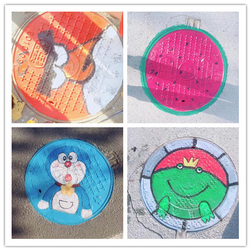 此次活动本着“环保”的理念对井盖涂鸦,不仅充分展现了同学们的绘画才能和奇妙构思,更使原本稀松平常的井盖变得更加醒目,减少踩踏情况、预防事故发生,赢得了师生的一致好评。