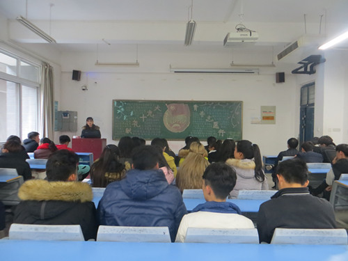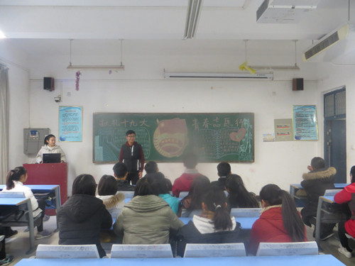 为贯彻落实党的十九大精神,传递志愿服务精神,展现当代大学生勇于担当、积极参与社会志愿活动的风采,我院于11月30日下午分别在A220、A222、A309、A310等教室开展“献礼十九大,青春志愿行”主题团课活动。