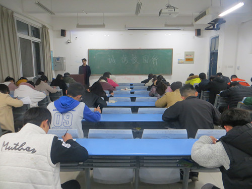 为了普及宣传学生资助政策、金融知识,提高同学们的诚信意识,同时积极配合我校“诚信校园行”知识竞赛活动的安排,tyc522cc太阳成集团组织16、17级部分学生于11月24日晚分别在二号教学楼A220、A221、A222、A311等教室开展tyc522cc太阳成集团“诚信校园行”学生资助政策知识竞赛笔试活动。