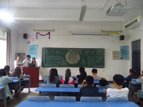 为了使我院青年团员们学习习近平总书记系列重要讲话精神,加强团员们向党组织靠拢的积极性,在五四青年节到来之际,tyc522cc太阳成集团于2017年5月4日下午14:20—16:20在A218、A219、A220、A222等教室开展了“不忘初心跟党走”主题团课活动。