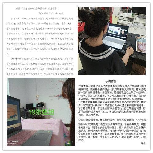 陈教授深入浅出的讲解和幽默风趣的语言使得同学们受益匪浅。在讲座结束后,我院组织学生以寝室为单位,进行线上讨论,并撰写此次观后感。此次心理教育课程的开展,使得同学们树立正确的情绪宣泄观念,获得正确的情绪管理方法,对于学生的心理健康发展有重要指导意义。