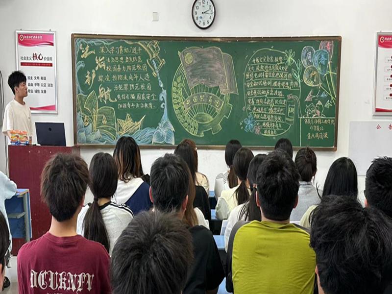 团课伊始,各班团支书通过视频播放与PPT讲解相结合的方式带领同学们认真学习了习近平法治思想、党的十八大以来全面依法治国取得的各项成就,使同学们进一步认识到了遵守法律的重要性;接着,向同学们分析了危害学生安全的主要因素,通过案例的形式向同学们普及了交通、消防、防电信网络诈骗、防盗窃等安全知识,以及相关违法行为要面临的法律制裁,告诫同学们不要以身试法。最后,各小组围绕讲解内容和观看的视频资料进行深入讨论,分享各自的看法和体会,加深彼此对法治精神内涵的认识与理解,各班团支书积极倡导班级同学要积极参与校园各种法治安全答题活动,做到知法、懂法、守法。