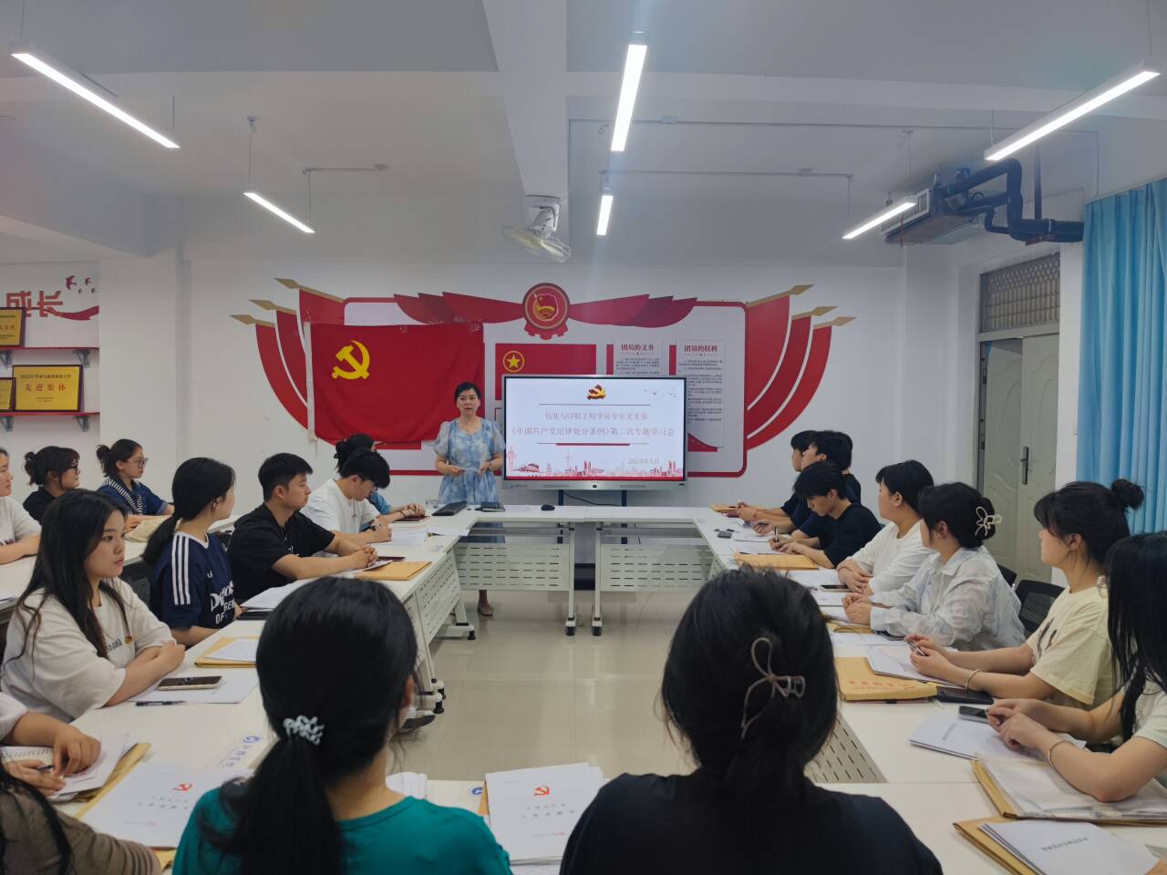 会上,段婧以以“筑牢党员纪律防线”为主题,重点对《中国共产党纪律处分条例》第二编分则里对违反政治纪律行为的处分和对违反组织纪律行为的处分内容进行了领学,并结合实际案例,对条例中的重点内容进行了解读,使大家更加清晰地认识到党的纪律的严肃性和重要性。她强调纪律是党的生命,是维护党的团结统一、完成党的任务的保证。全体党员要深入学习条例内容,自觉遵守党的纪律,做到知敬畏、存戒惧、守底线。在学习过程中,党员们认真听讲,积极思考,现场气氛热烈而庄重。之后,学生党员付蓝莹带领大家学习了习近平的重要文章《加强文化遗产保护传承弘扬中华优秀传统文化》的文章,号召全体学生党员站在强国建设、民族复兴的历史新方位,更加紧密地团结在以习近平同志为核心的党中央周围,深入学习贯彻习近平文化思想,进一步深刻领悟这一重要思想的丰富内涵、宏阔视野、高远立意,切实担负起新的文化使命,做中华文化的热烈拥护者、忠实学习者,用中华民族创造的精神财富以文化人、以文育人。