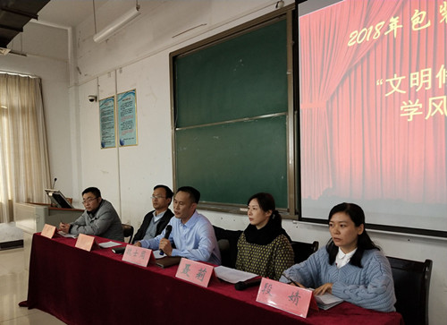 为发扬乐学精神,提倡文明生活,督促我院学子养成文明乐学的良好风气,11月8日下午,tyc522cc太阳成集团于合501教室举行“文明修身 乐学进取”学风教育月活动启动仪式。我院正处级组织员魏士周、党支部副书记聂莉、副院长李自刚、党政办主任郑高锋及18级全体学生参加了此次活动,启动仪式由辅导员段婧老师主持。