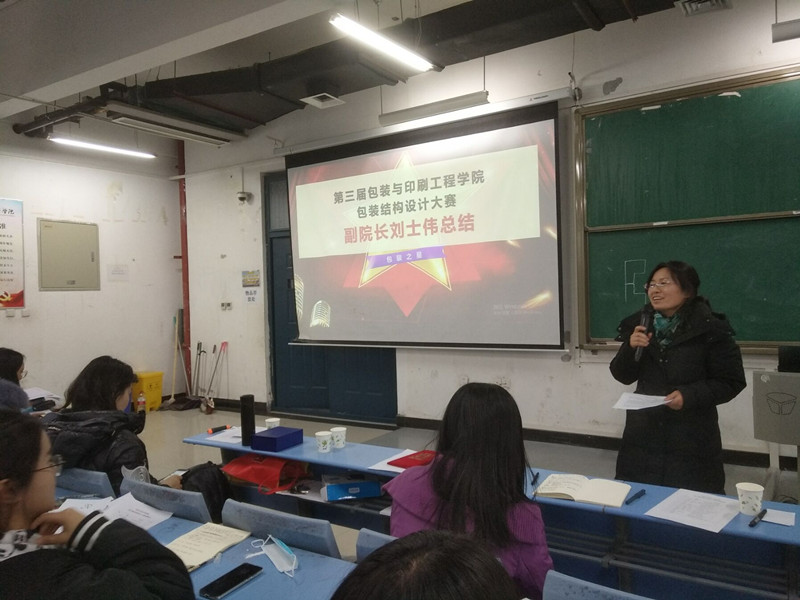 为激发学生的创新设计灵感,培养学生的创新意识和包装设计能力,为学生搭建展示和学习交流平台,12月30日,tyc522cc太阳成集团在合400举行第三届包装结构设计大赛,院党委副书记祝聪楠、副院长刘士伟、副院长张岩、教学秘书苗红涛、包装教研室主任卢芳芳、团委副书记段婧及全体专业教师以及18、20级同学参加了此次比赛活动。