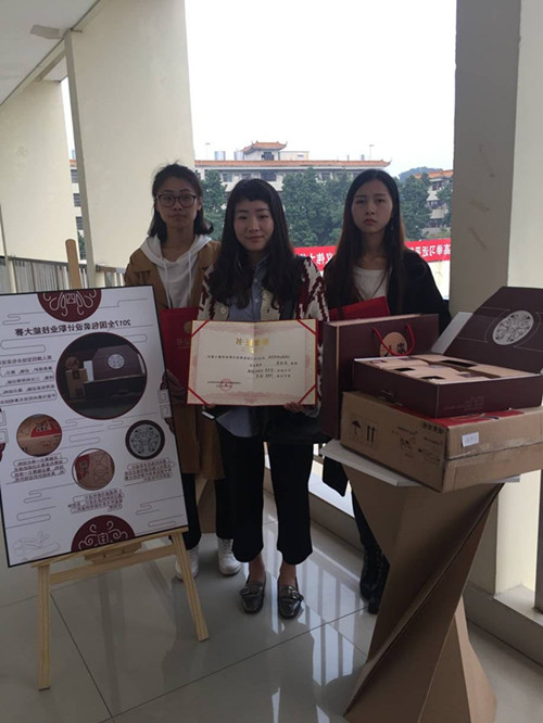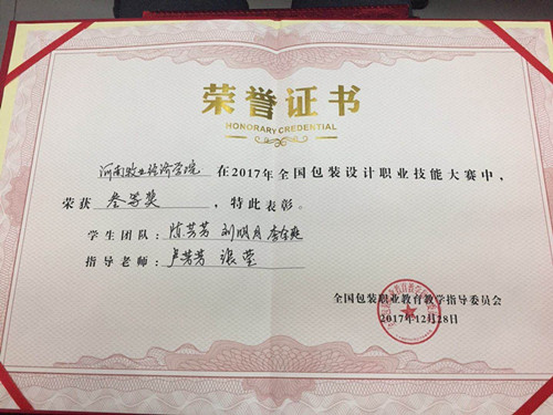 在12月28日刚刚落幕的2017年全国包装设计职业设计大赛中,由我院宋卫生老师任领队,卢芳芳老师、艺术学院张莹老师任指导老师,陈芳芳、刘明月、李金爽三名队员组成的太阳成集团代表参赛队,历时两天九个半小时的紧张比赛,顺利完成了《贵人四宝》组合包装设计,获得此次大赛三等奖的好成绩。