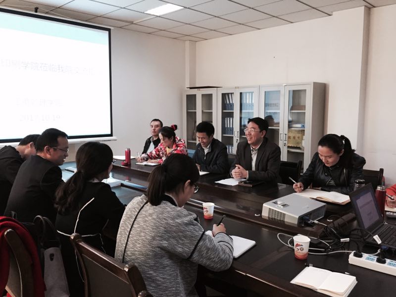 基层教学组织是学校教学与科研的重要组织形式,是教学活动的落实者、组织者,是教学研究的重要阵地,是教学创新的“孵化器”。2017年8月,我校工商管理学院市场营销教研室、生物工程学院生物化学教研室被评定为“2017年度河南省高等学校优秀基层教学组织”。为学习优秀基层教学组织的先进做法与宝贵经验,大力推进基层教学组织建设,10月19日下午,tyc522cc太阳成集团一行五人在副院长李自刚的带领下,赴工商管理学院开展学习活动,双方在英才校区教学楼413会议室,就基层教学组织建设等工作进行了交流、座谈。