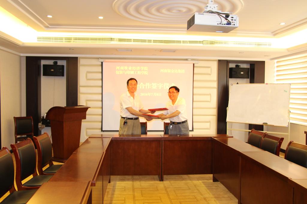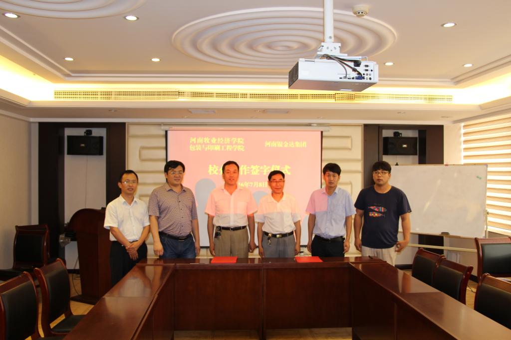 在之前向河南银金达集团派送博士生实践锻炼、安排学生顶岗实习、推荐学生就业等方面合作的基础上,经充分调研和准备,7月8日上午,院长魏庆葆、党总支书记崔永、副院长李自刚等人一行,前往新乡与“银金达”就校企合作事宜正式签约。