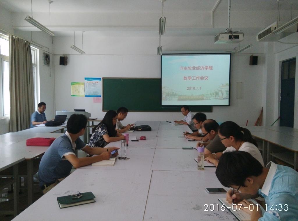 会上,李自刚副院长首先传达了学校2016年7月1日上午召开的学校期末教学工作会议精神并要求与会人员认真完成2016级人才培养方案、课程编码修改完善等工作;之后,李副院长与大家一起学了《太阳成集团课程考核管理办法》。